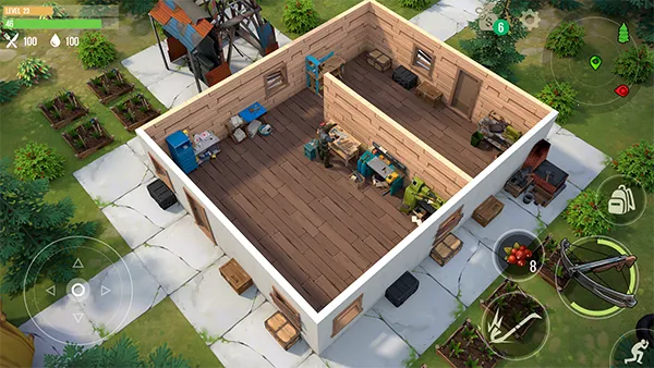 2. 深度的生存建造:可收集各种物质,搭建并升级营地里的工具台,制造食物生产工具和武器,通过不断努力来更好地生存。