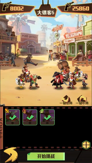 绝境猎人是西部题材卡牌游戏,融合策略布阵与放置玩法。玩家收集60余位风格各异动物角色,升级进阶搭配羁绊组传奇小队。队伍自动执行任务赚赏金,触发动态事件,体验纯正西部牛仔风情。