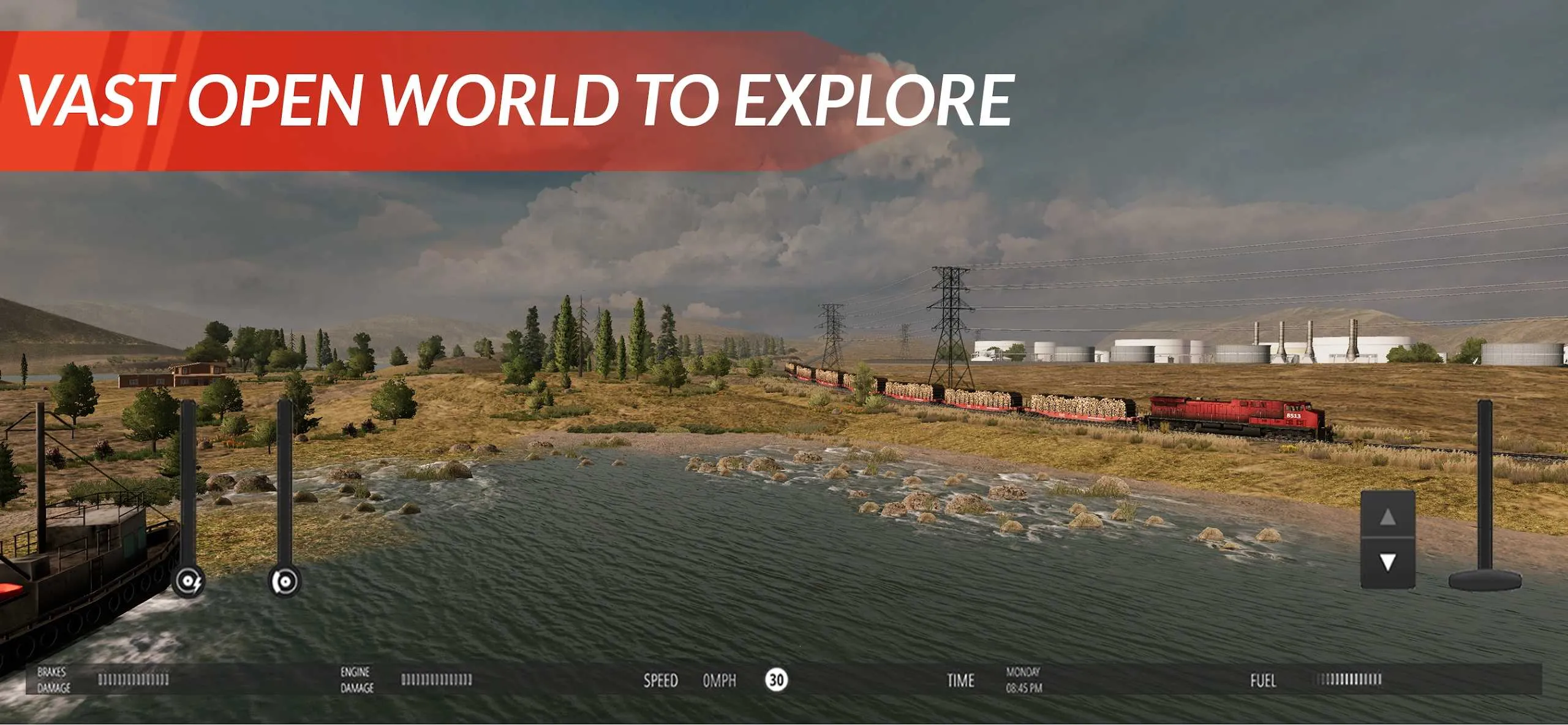 欣赏自然景观:玩家在驾驶火车的过程中,能够观赏到美国的自然景观,如延绵的山峰、路过的隧道、沿途的城镇等,感受大自然的魅力,增添更多乐趣。