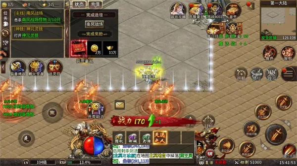 3. 系统丰富:拥有特色打金系统和交易系统,玩家可通过打怪掉落实物兑换代金券,交易限定装备换取红包等。还有专属神器、异兽神兵等特色玩法,在挑战BOSS中有意想不到的收获。
