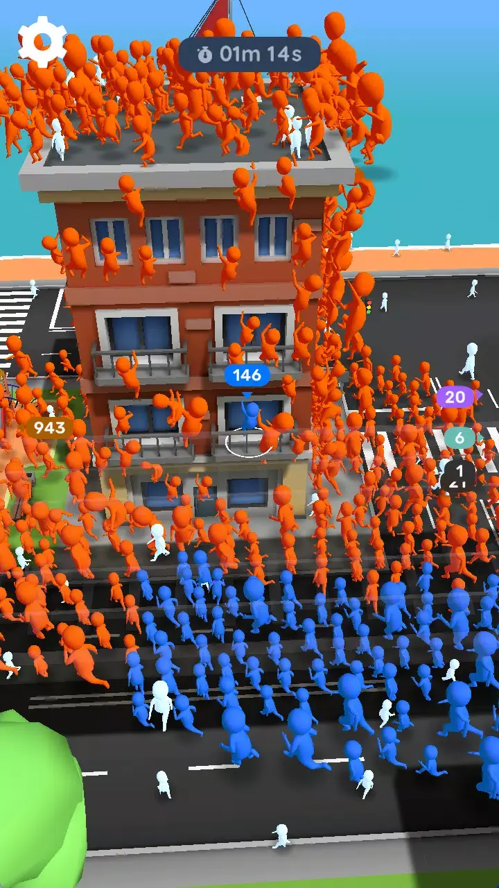 这是一款极具挑战性与趣味性的游戏。玩家能穿梭于城市大街小巷,收集中立火柴人壮大队伍,击败对手,成为城中最强势力。不同于普通队伍游戏,在这里可匍匐前进躲避障碍,利用跑酷技巧生存追击,速度移动与智慧决策缺一不可。从一小队起步,逐渐发展成无敌军队,人越多力量越强。收集人马、躲避危险、跑酷追击,体验称霸城市的快感,值得一试。