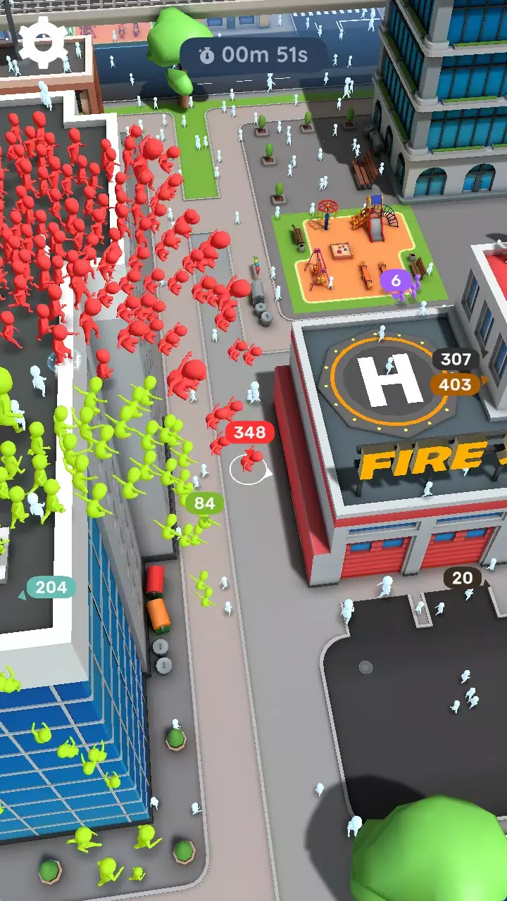 在这款游戏中,你能穿梭于大街小巷,收集中立的火柴人,不断壮大队伍,击败敌方队伍,成为城中最强大的势力。