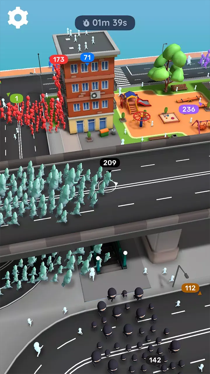 从一小队人马起步,逐步发展成势不可挡的军队,聚集的人越多,力量越强大,凭借速度与智慧决策称霸城市。通过不断收集人马,吞并敌方队伍的追随者,还能匍匐穿过狭窄空间躲避危险,在游戏中尽享乐趣与挑战,展现强大实力。