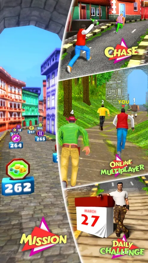支持好友联机与全球玩家实时竞技,能在排行榜展示最佳成绩,与朋友一同体验刺激的追逐跑酷乐趣,尽享竞技快感。
