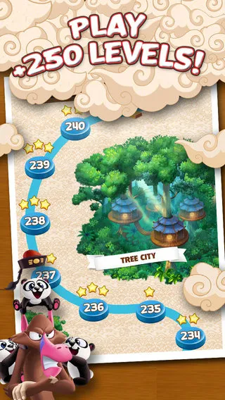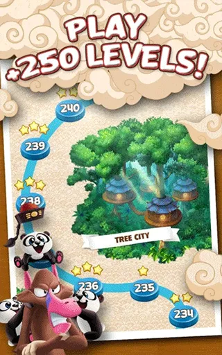 3 玩法与同类泡泡龙游戏一致,控制发射台消除同色珠子救熊猫宝宝。过程中有特殊效果珠子,关卡推进还会出现惊喜小道具助玩家通关。