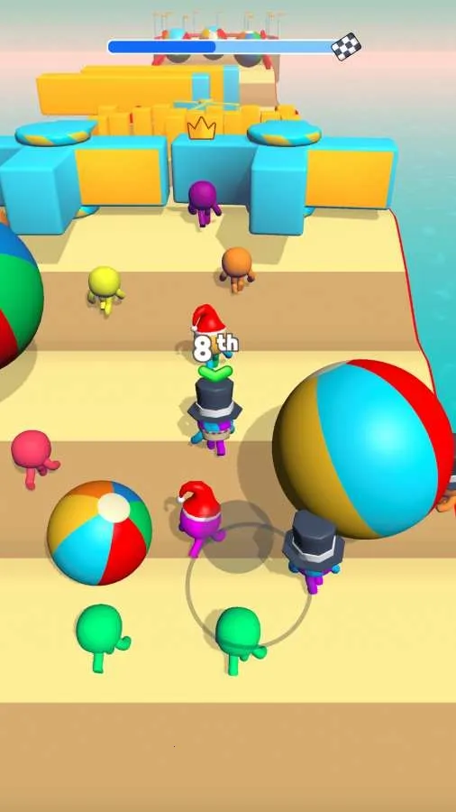 这款休闲竞技游戏超有趣。它有着特别有意思的玩法,q版画风让人物十分可爱。操作简单易上手,魔性玩法令人欲罢不能。玩家要控制糖豆人与60名对手同场竞技,避开障碍冲向终点,没有时间限制,获得第一名即可获胜,很考验手速与反应。还能干扰对手,但也要谨防被攻击,防止摔倒坚持到最后。每一关只有前五名玩家能进入下一关,时刻注意对手,利用各种道具和策略击败他们,享受对抗竞争的乐趣,带来超棒的游戏体验。