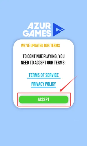 2、点击红框内ACCEPT按钮,确认同意AZUR GAMES的更新条款。
