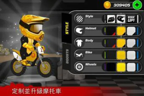 3、有着丰富的玩法,不仅能驾驶摩托越过障碍,拾取金币购买新车,还支持自定义车辆。
