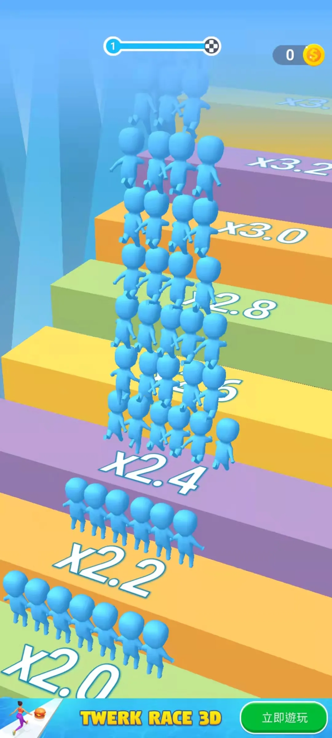 3. 冲撞障碍,击败途中众人,收集金币升级等级。