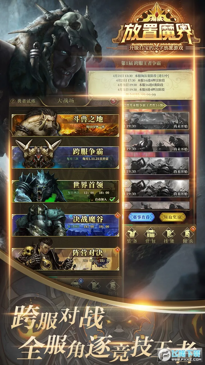 放置魔界是一款以魔幻为背景的放置养成类手游。可挂机升级,装备属性随机生成、自由组合。有异界探索等玩法,能零氪养成。还能跨服竞技,自由搭配技能,多样装备系统,丰富角色选择,带来独特游戏体验。