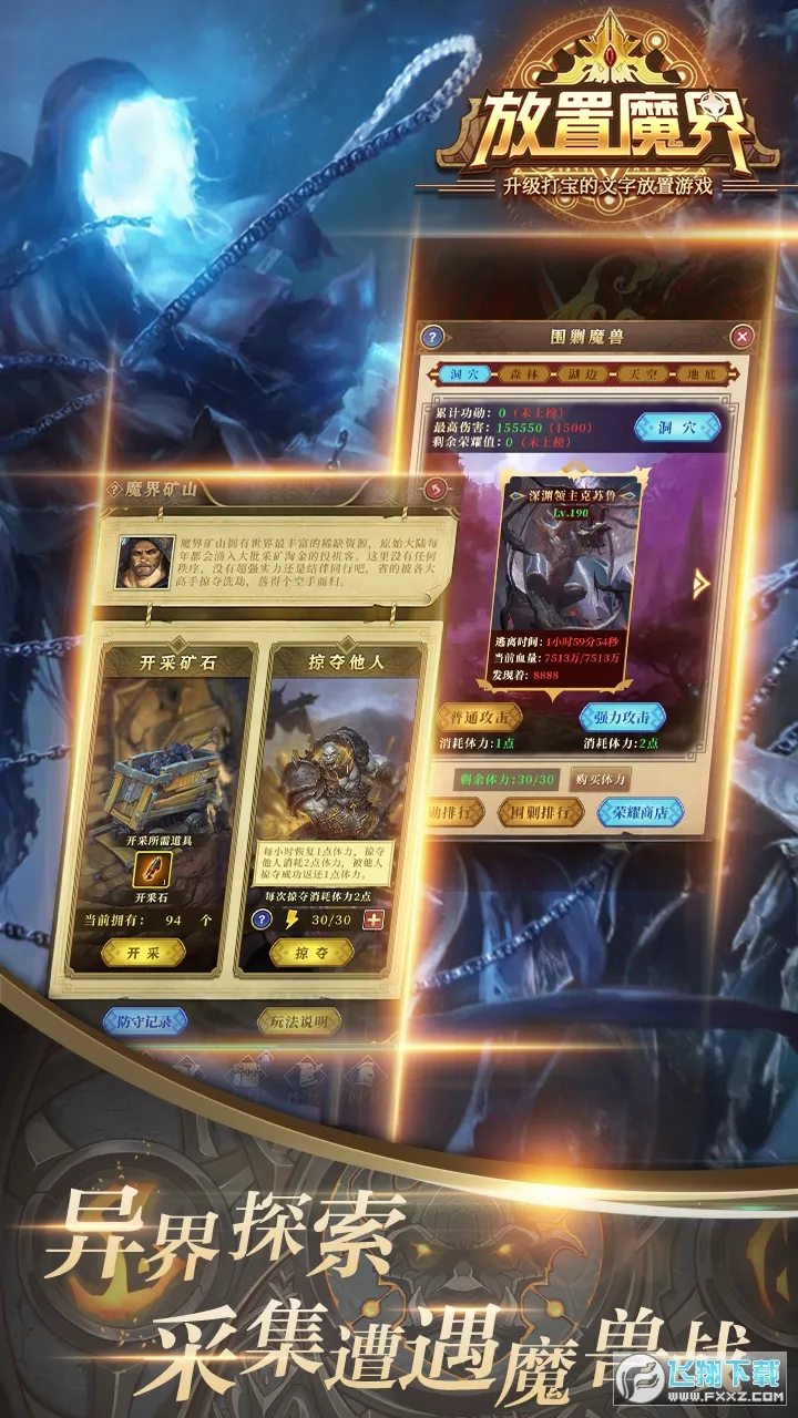 这是一款超好玩的文字放置类游戏。它以魔幻为背景,构建了精彩世界。有放置挂机模式,轻松升级打怪,装备掉落不停。装备属性随机生成,数百种自由组合,每件都独特。能跨服竞技、斗兽、探索魔界、建设家园。还可自动离线挂机,上线领大量奖励,打怪掉技能书籍和代金券。宝石镶嵌玩法丰富,不同职业有主属性宝石。神器系统也很有趣,吞噬、融合能升级属性。总之,想体验精彩魔幻放置养成,这款游戏别错过!