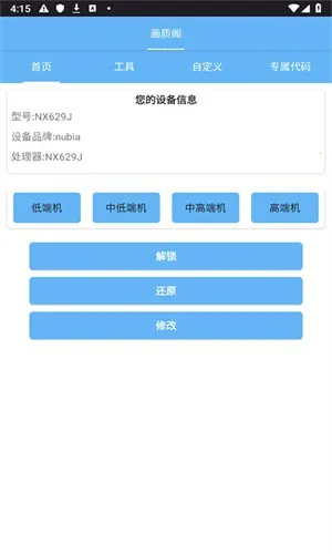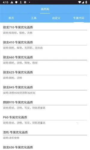 进入画质阁软件后,系统会提供机型选择功能。你可根据手机实际型号自由挑选,确保后续画质修改与设备硬件完美适配,避免出现兼容性问题。