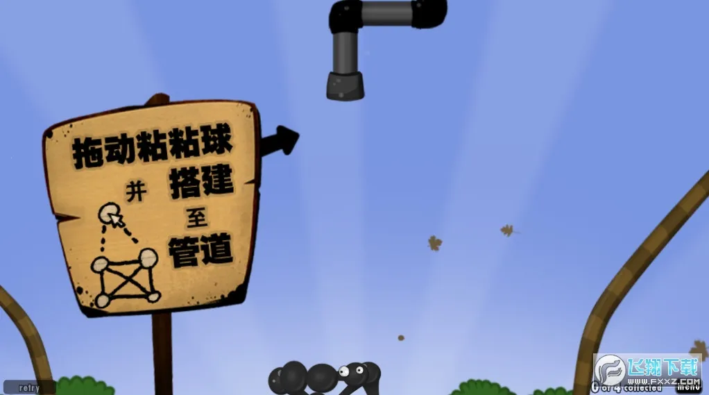 游戏画面采用清新可爱的简约卡通画风,以2D横版呈现,仅由简单线条和节点组成,静动结合恰到好处,Q弹的粘粘小球形象搭配轻快音乐与可爱音效,让人心情愉悦。