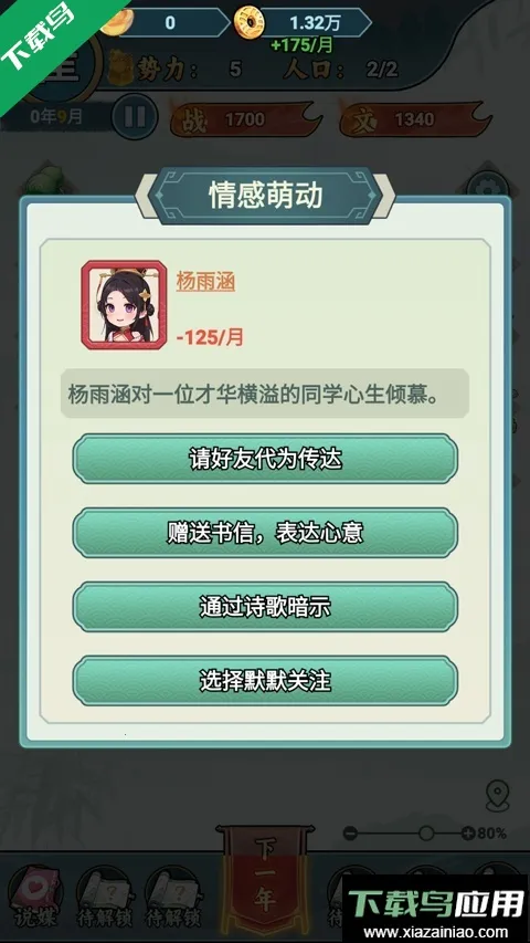 2. 随机事件丰富多样,在深山中发现古老典籍、结识身怀绝技的匠人等,你的选择直接影响家族走向,充满未知与惊喜。