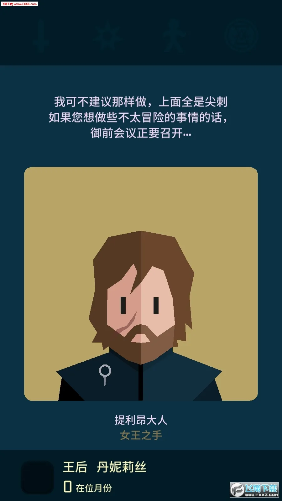 - **抉择影响存亡**:玩家在游戏中拥有绝对权力,需根据不同人物的请求,通过左右滑动卡片做出决策。每个决定都会影响宗教、人民、军事、财富四大数值,任一数值归零或满格即为游戏结束。玩家的目标是延长统治时间并打破诅咒。