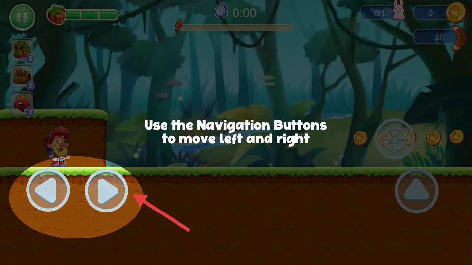 1、使用屏幕虚拟按键控制矮人移动跳跃,实现双段跳或使用武器攻击怪物。