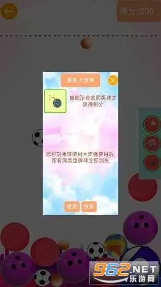 2. 丰富助力道具:拥有魔法球、锤子、大炸弹等丰富实用的道具。魔法球能改变球的类型并获积分,锤子可摧毁指定球得积分,大炸弹能清除同类球,助力玩家轻松获得高分。