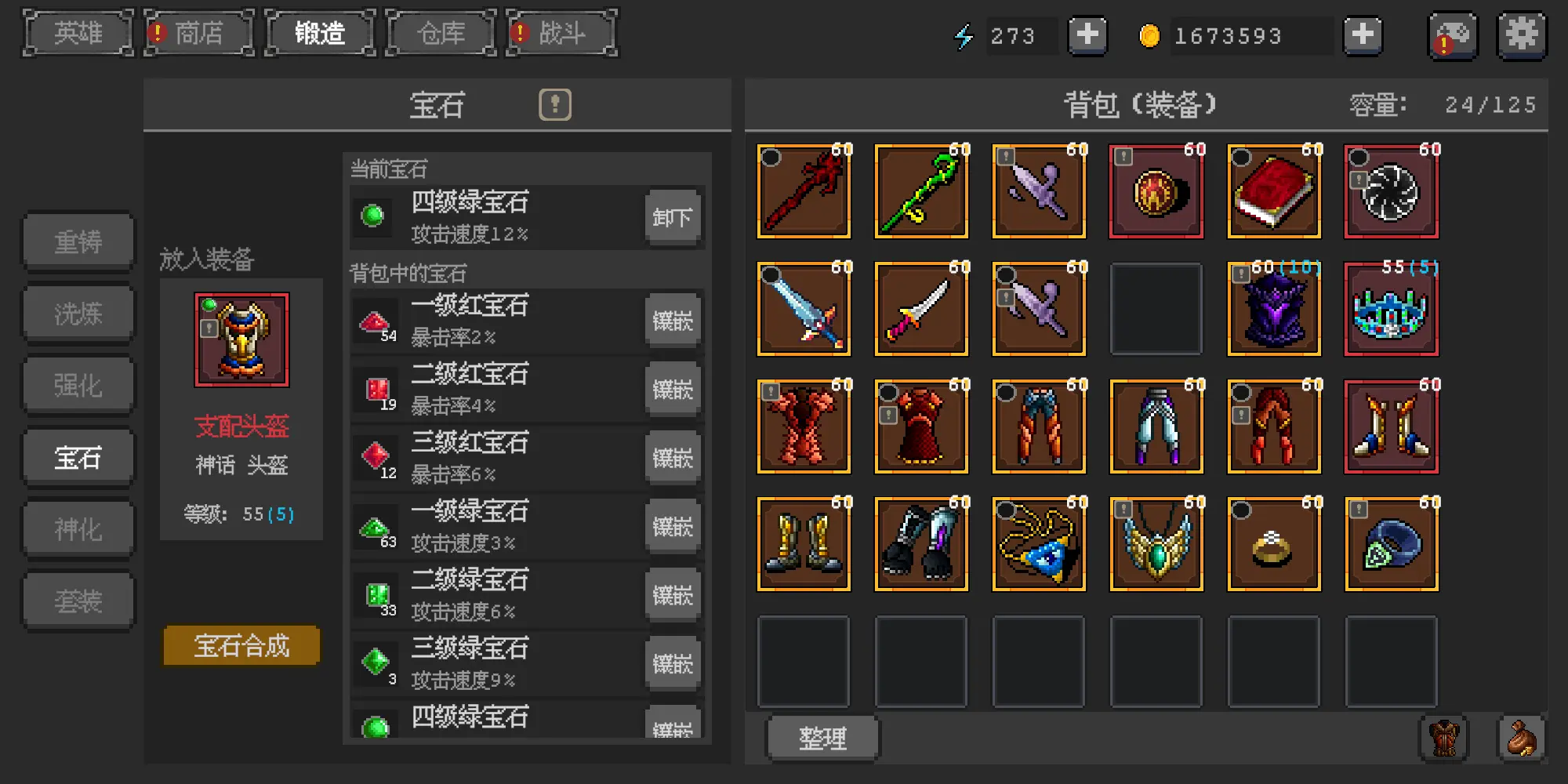 2. 养成系统深度有趣:通过完成游戏任务解锁金币奖励,提升战斗属性。英雄可升级、升技能,还有潜能系统。武器装备能锻造、重铸、洗练、强化、镶嵌宝石等,玩法丰富,助力玩家打造强力角色和装备。
