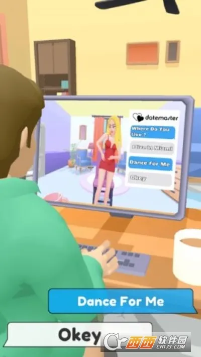 约会模拟器大师中文版是模拟网络恋爱的休闲游戏,有简易3D画面与趣味内容。玩家通过互联网结交女网友,靠问答获喜爱,能积累钻石金币换道具,还有起伏剧情、逼真环境模拟等,可学约会技巧。