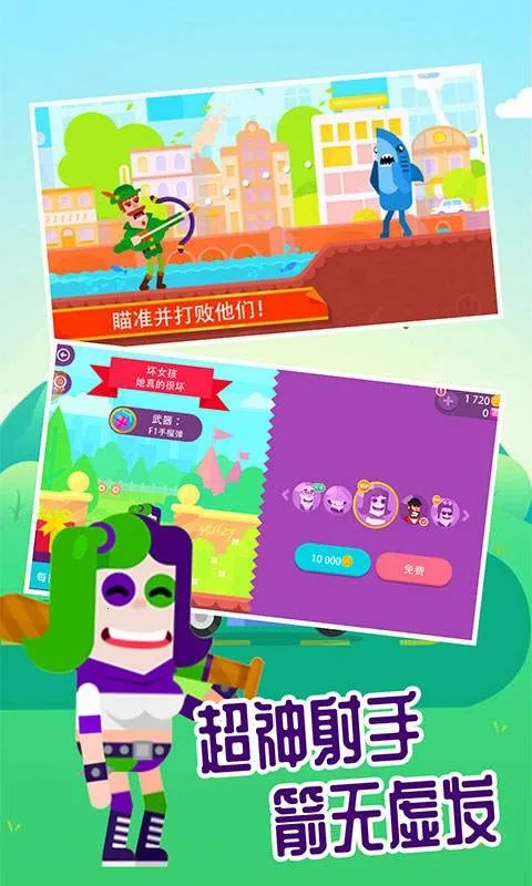 1. 拥有海量角色与武器,可自由选择喜欢的角色及弓箭皮肤。