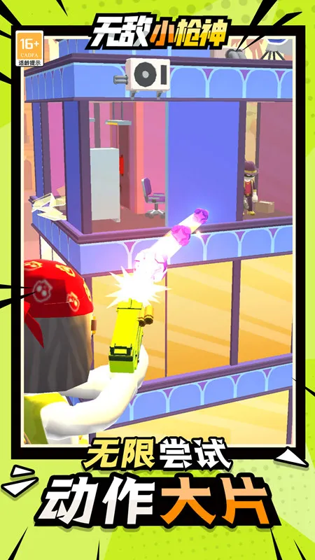 无敌小枪神是一款趣味十足的动作射击手游。采用清新卡通画风,有繁多武器装备可自由组合。玩家在移动飞行器上清除建筑物内敌人,操作简单,物理引擎出色,场景可破坏,弹药无限,还有多种模式等你挑战。