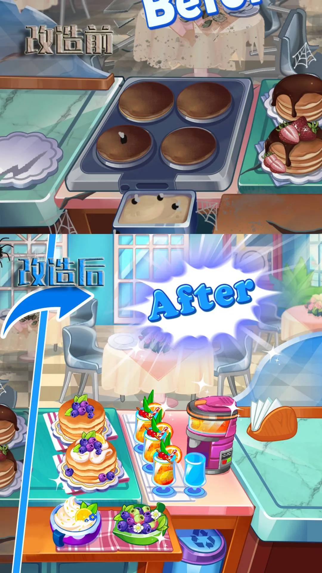 丰富菜谱自由搭配:楼下小餐厅初始化就拥有种类丰富的菜谱,涵盖中西餐甜点等。玩家能根据顾客反馈和市场需求更新菜单,还可通过多种食材和配料的搭配,制作出自己的独特菜品,满足不同顾客口味。
