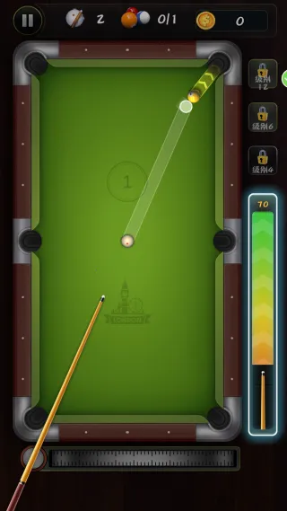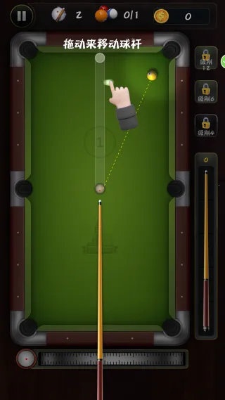 台球大师挑战赛4是一款超棒的手机台球游戏。它用先进物理引擎,给你硬核体验。想通关,先点击开始游戏,拖动球杆调好位置,掌握瞄准方向。滑动屏幕控制击球方向角度,靠力度条精准调力量大小。击球前拖动画面看全局,用辅助线预判球路。
