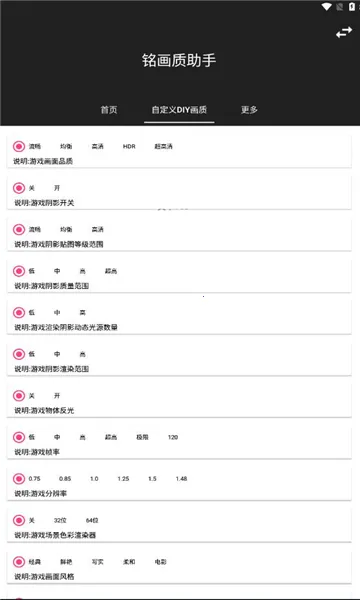 2. 功能强大:它拥有丰富的辅助功能,能帮助轻松改变游戏画质,可调整分辨率等,还能自动检测设备性能和网络环境并推荐最佳设置,满足多样需求。