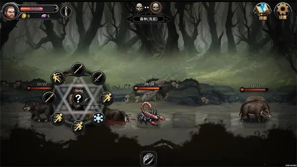右上角【技能】按钮可随时打开技能面板,查看当前已解锁技能的触发条件、指令组合及冷却状态;连招提示清晰,助你快速掌握高阶操作节奏。