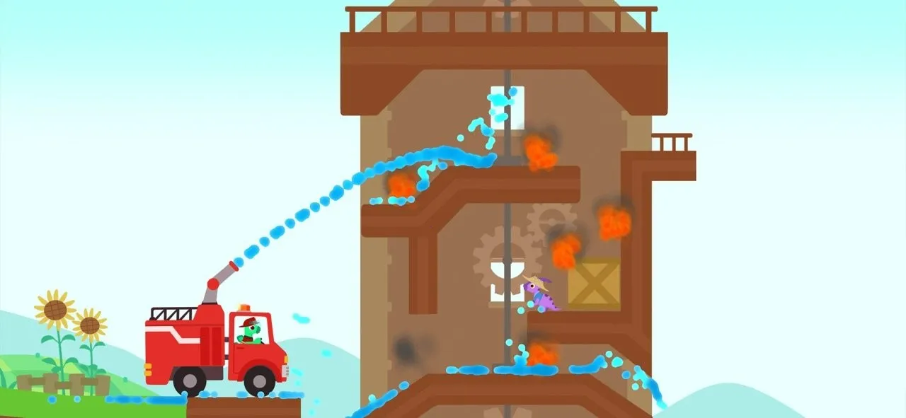 恐龙消防车2026官方正版是一款卡通风格的消防灭火模拟游戏。玩家扮演消防员驾驶消防车奔赴火场,结合流体物理与闯关玩法,有丰富关卡。游戏含多种特色玩法,能让孩子学习消防知识,体验救援紧张与成就感。