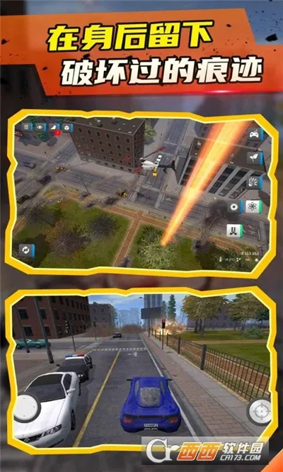 粉碎城市2是一款休闲解压游戏,能让你用各类武器或神奇力量粉碎城市。有多种挑战任务与自由模式,画面是色彩亮丽的卡通画风。操作简单,破坏特效酷炫,还有海量关卡,能自由探索广阔世界,与强力巨兽对战。