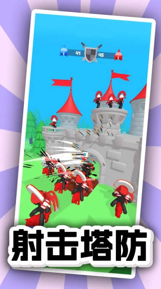 4. 特色战斗机制:持盾兵、法师等敌人有不同防御机制,还有前排重弓手、中排速射手、后排狙击手的立体战术配合,以及各种元素箭对特定敌人的额外伤害效果,让战斗更具趣味性。