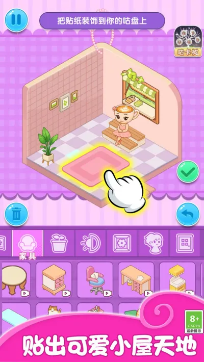 想找一款能轻松解压又充满乐趣的游戏吗?那就来试试这款超棒的游戏吧!它能让你沉浸在独特的体验中。这里有超多可爱房间供你用贴纸装饰,还有各种风格的家具摆件。你可以自由发挥,打造专属独特风格,自由度超高。贴纸有动态效果,让小屋更生动立体。能自定义布局,海量玩法免费畅玩。还能保存图片参赛,关卡丰富不枯燥,对新手友好易上手。完成任务解锁稀有贴纸,参观邻居小屋学习装扮理念。它绝对是休闲娱乐的最佳选择,快来下载吧!