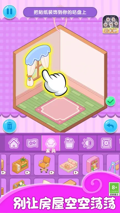 2. 自由度高:可自定义房间布局,按自己想法创造设计。能用各种贴纸装饰房间,搭配不同风格家具及摆件,打造独特风格。