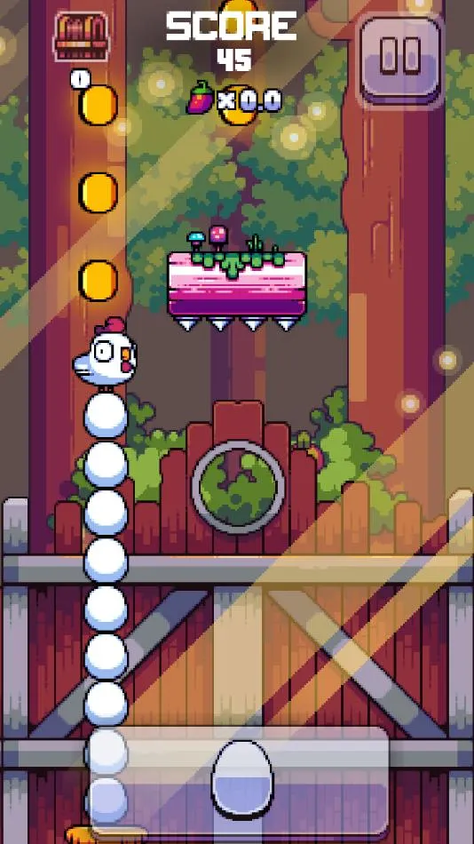 这是一款玩法独特的休闲闯关手游。玩家操控母鸡下蛋堆叠高度向上攀爬,躲避障碍与陷阱。游戏设定别出心裁,小鸡要逃离农场,途中收集道具金币。采用卡通像素风,画面色彩明快,美术风格讨喜。每关成功逃离可获奖杯,挑战过程轻松有趣。比如操控需灵活,要通过撞击躲障碍。小鸡能生蛋作跳板抵达高处,走位要精准找最佳下蛋位置。关卡设计巧妙,充满趣味与挑战,还设有丰厚奖励,非常值得一玩。