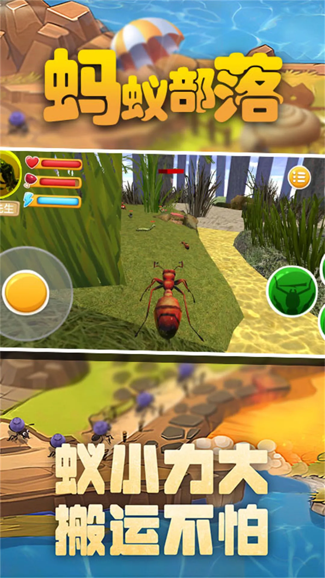 蚂蚁部落是一款写实风蚁群生存模拟游戏。它能让玩家化身蚂蚁开启微观世界求生之旅。在这里,玩家要收集食粮维持饱腹与体力,搭建巢穴壮大族群,应对敌对蚁群与昆虫攻击。通过上帝视角统筹经营,搭配兵种实时争夺资源,体验从弱小蚁群到丛林霸主的崛起。游戏玩法丰富多样,有挖掘扩建地下巢穴、指挥蚁群抢占地表领土搜集资源、体验角色分工、与其他玩家实时对战等。其特色在于多样玩法与策略组合,操作直观简单,能带来微小蚂蚁强大力量的新鲜感。游戏亮点众多,有经典战争策略体验,简易操作与趣味玩法,极具挑战性的高难度,还有高清画面与丰富内容。如果你喜欢策略生存类游戏,那么蚂蚁部落绝对值得一试,快来下载开启你的蚁群生存之旅吧。