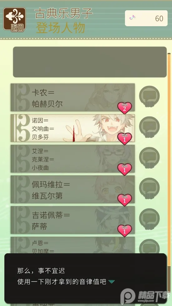 1. 丰富剧情体验:拥有超45条角色故事线等您解锁,剧情饱满有趣,每次演奏经典乐章如卡农、月光奏鸣曲、第九交响曲等,都可能触发特别剧情或带来惊喜,让您沉浸其中,感受独特的音乐冒险。