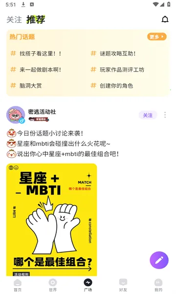 谜境是一款独特的解谜社交软件。它将密室逃脱与社交互动巧妙结合,为用户带来全新体验。这里有丰富多样的解谜游戏,像纸嫁衣鸳鸯债双人版等。**拥有独特推理社交体验,多人实时语音**,能让你结识众多志同道合的小伙伴。不管是推理谜还是小萌新,都能在此找到乐趣。密逃发烧友可寻密室同好,还有桌球、狼人杀等趣味小玩法。能和好友组队联合破案,以谜会友,享受休闲玩法,快来加入谜境开启解谜社交之旅吧。