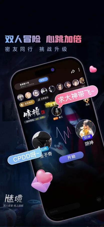 嘿,喜欢解谜游戏的小伙伴看过来!谜境app可是个超棒的选择。它是一款社交解谜软件,能给你带来全新体验。这里有各种精彩的解谜故事,像血染钟楼、情棺3等。你可以和好友组队,一起在双人线上密室逃脱中畅玩,共同破解谜题,趣味加倍。