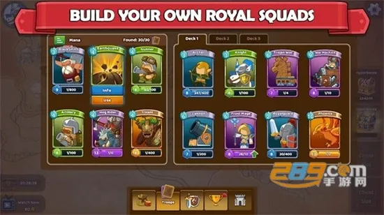 在《军团冲突王国崛起》里,要打好不朽关卡得讲究不少策略。这游戏把卡牌收集和塔防策略结合得超妙,你能扮演联盟首领抽卡组军团。战斗时能量条得算好,瞅准时机部署部队。像炮兵、弓箭手、地雷、骑兵等不同兵种,召唤消耗的能量不一样。通关关卡能收集兵种碎片强化兵种。