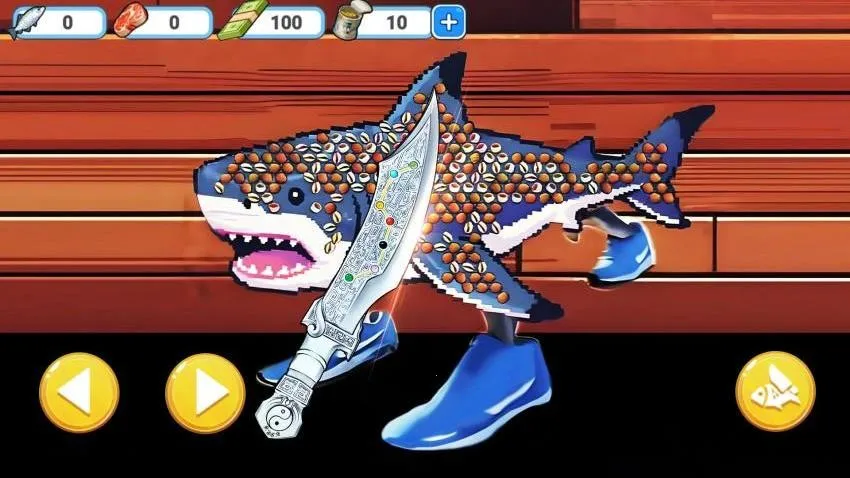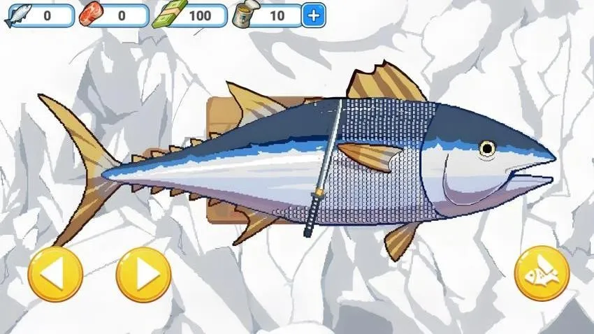 3. 可升级装备,如购买新鱼竿、鱼钩和刀具,助力轻松钓鱼与刮鱼鳞。