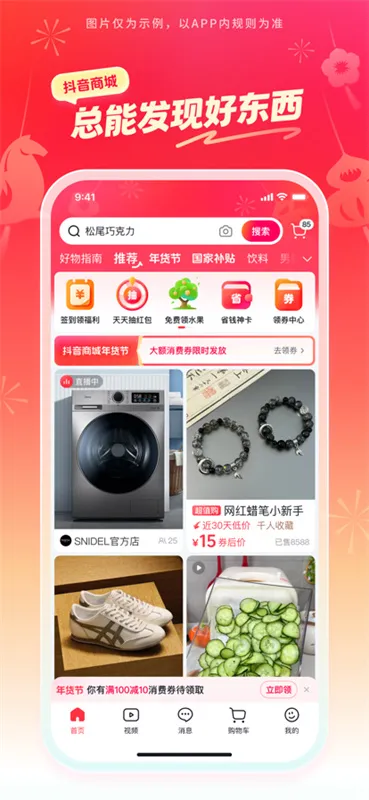 抖音商城2026最新版本是抖音官方推出的网上购物软件。商品丰富,涵盖多品类,有新人优惠、补贴活动。支持多种搜索,能合并付款,物流可实时提醒,还能社区互动分享,界面简洁操作流畅,购物体验便捷愉悦。