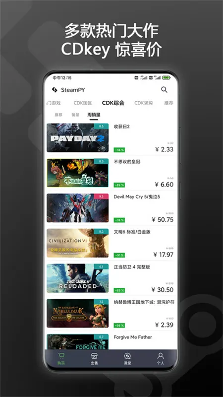 SteamPY2026是一款为Steam玩家打造的游戏交易平台,提供安全便捷交易服务。有丰富多样游戏资源,可低折扣买CDkey、充值等。能查代购额度、售账户余额等,交易自动化,界面优化,给玩家全新游戏服务消费体验 。