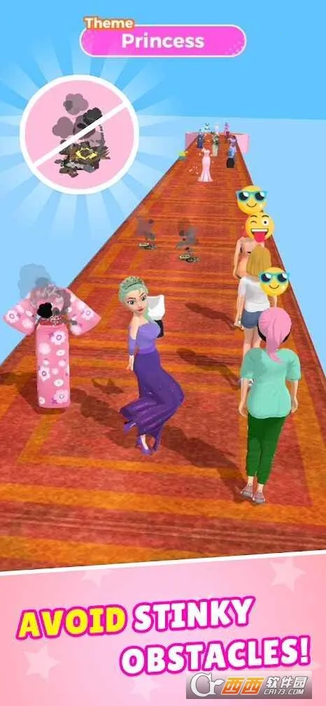1. 玩法简单易上手,以闯关为主,操控角色在赛道狂奔收集服装配饰,躲避障碍物,轻松享受游戏乐趣。