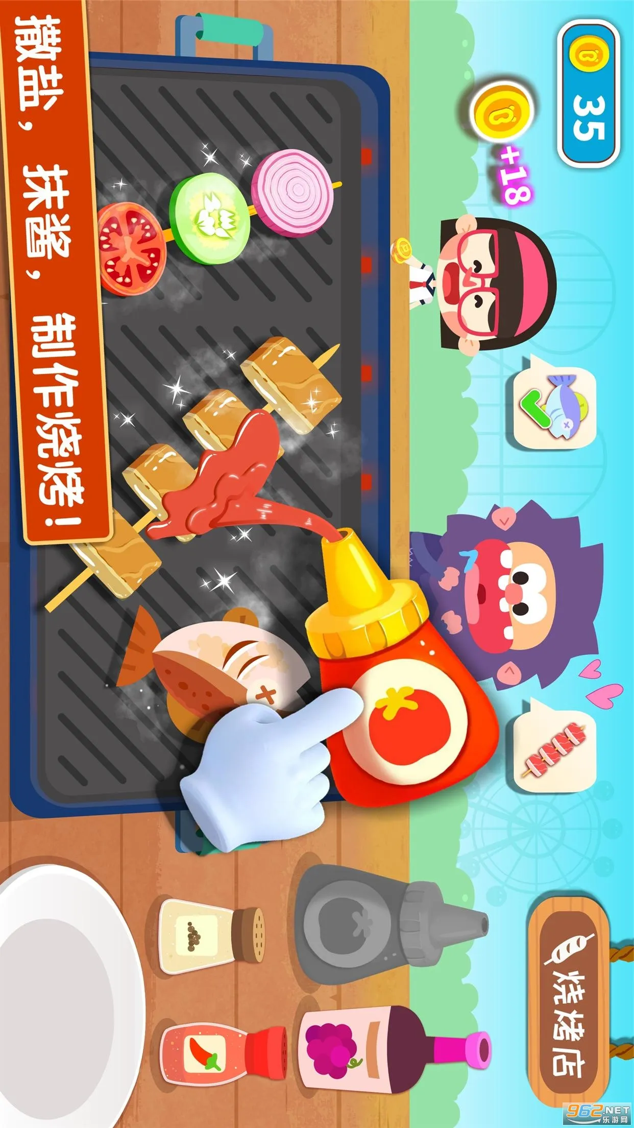 3. 设有多种趣味玩法,如欢乐烧烤、打包糖果、九宫格关东煮、水果切切乐等,锻炼多种能力。