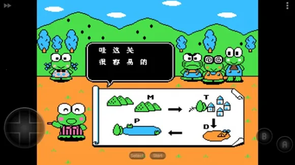 大眼蛙大冒险2是一款超有趣的像素风RPG冒险手游。它能满足你自带无敌体验游戏的需求哦!在游戏里,你将扮演青蛙可乐比开启冒险。操作很简单,点击屏幕下方start按钮就能进入奇幻世界,左下角虚拟摇杆控制左右移动,右下角B键攻击,A键跳跃。这里有各种障碍和小怪物,你可以用攻击打败它们,也能用跳跃技巧踩死。收集关卡中的道具能加分,吃水果类道具还能短暂强化攻击力。它的风弹机制超有创意,发射风弹抓取敌人当踏板跳跃或投掷攻击,操作上限高。2.5D画面采用伪3D技术,场景层次丰富。剧情讲述可乐比阻止月之世界毁灭,感人至深。收集要素丰富,全收集可解锁隐藏关。通过手机模拟器运行,适配完美,触屏操作响应灵敏,存档方便,让你随时享受冒险乐趣,轻松拥有无敌般的游戏体验。