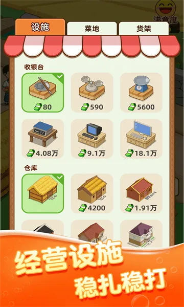 拥有多样化运营方式供玩家选择,能不断扩大店面规模,快速推出各类蔬菜,每个营业任务都有红包,带来更多惊喜。