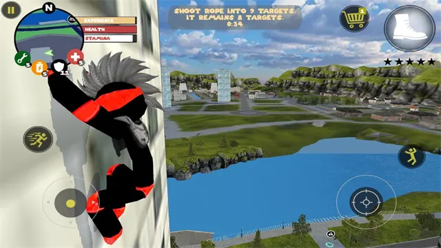 操作简单易上手:即使是新手玩家也能轻松驾驭,没有繁琐步骤,左侧控制移动与加速,右侧操控绳索、攻击、跳跃等,一切尽在掌握。