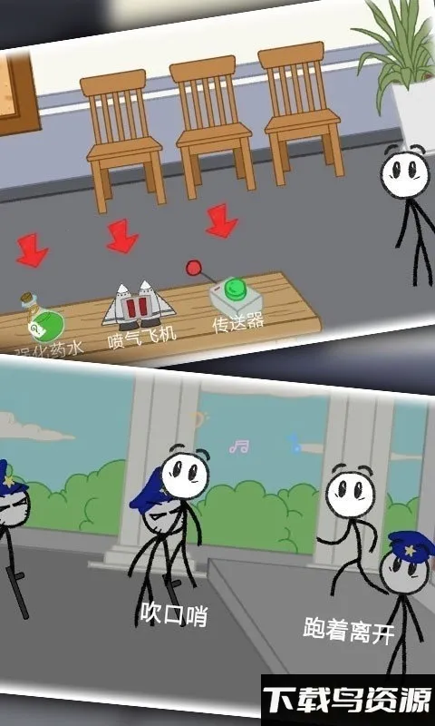 3. 经典画风呈现:采用火柴人系列一贯铅笔画风格,简单线条勾勒,形象诙谐,操作界面友好。