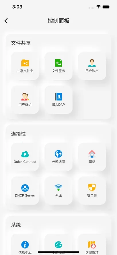 1、操作便捷:界面简洁明了,布局干净,随时随地可查看下载情况、存储空间,访问控制面板信息,集成多种实用工具,管理NAS轻松简单。